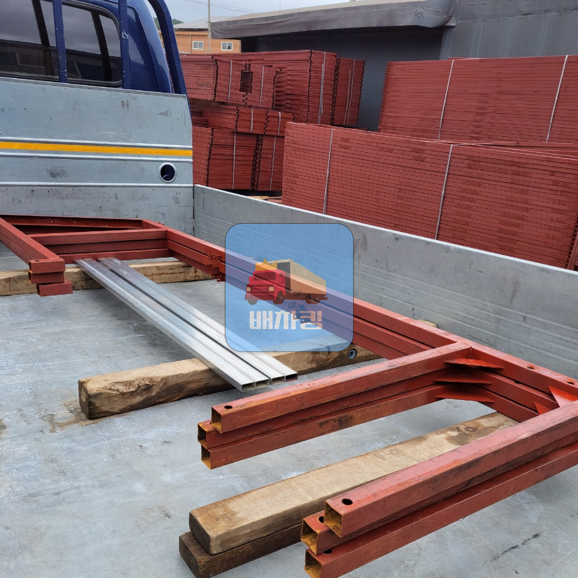 출고된 철제 구조물 자재를