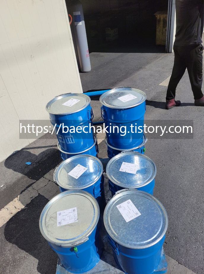다음으로, 말통에 든 에폭시를 한 파렛트 옮겼던 사례로,