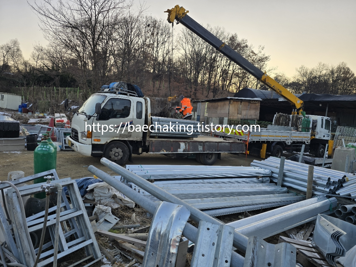 첫 번째로, 3.5톤 카고 트럭으로 가드레일을 운반했던 사례입니다.