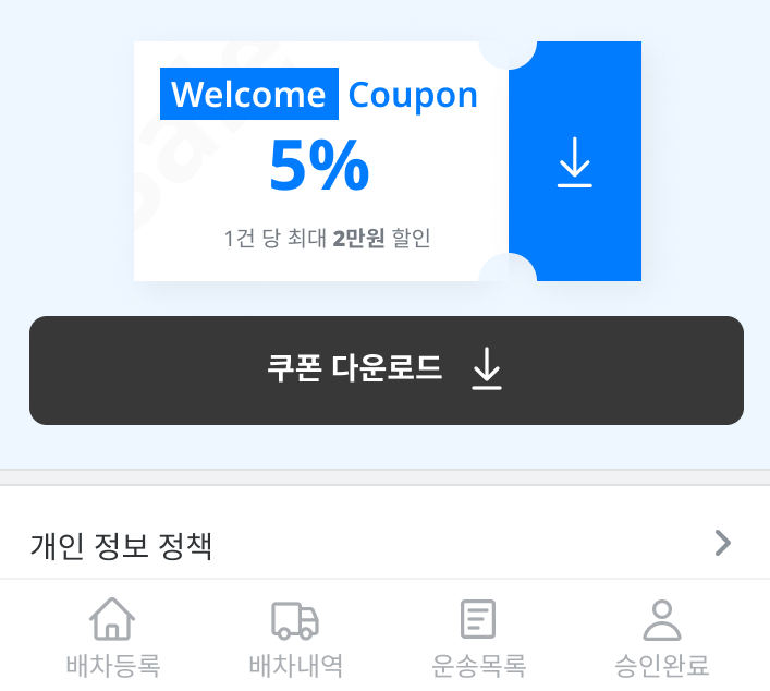 배차킹 앱을 이용할 경우 회원가입 즉시 5% 할인쿠폰이